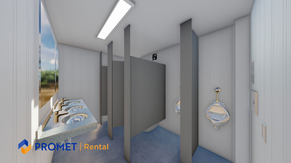 - Baño 20 pies 6 x 2,44 mts con división Hombre: 2 WC, 2 Urinarios, 3 Lavamanos y Mujer: 3 WC y 3 Lavamanos